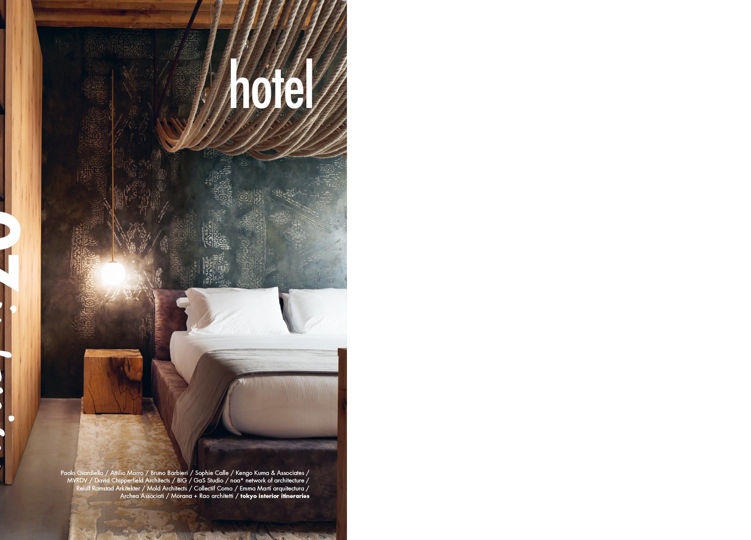The art of hospitality consists of many skills that cannot be separated from the infrastructure that, in turn, houses them all. However, even without considering the content, the definition of the container requires such complex knowledge that its design makes it nothing less than a testing bench for the ability to manage and coordinate a variegated multitude of skills. Obviously the level of complexity increases alongside that of the hospitality offered, which can range from “simple” sleeping accommodations – but even that must become, itself, an “experience” nowadays – to places with a wide variety of interconnected services and opportunities like restaurants, bars, cafés, night clubs, gyms, a wellness center, spa, swimming pools, shops, ATM, conference rooms, a business center, a media center, coworking spaces, a video room, a game room, a children’s playroom, library, smoking room and many other amenities capable of enhancing and characterizing the guests’ stay. Particularly for the large hotel complexes, and for those projects in which the most important international brands and leaders of the hospitality market are involved, the input of many specialists is required. In addition to classical expertise such as systems and structural engineering, there is a need for interior designers and lighting experts, landscape gardeners for the greenery, food and beverage experts, fire and safety experts, spa personnel and laundry consultants – even to experts of every other type that obviously will not exclude graphic projects and internal signage. It is also important to note that, while for a project that will be a tourist hotel, every effort should be made to offer an original experience of the location visited, and thus the general idea should tend to valorize the identity and specific cultural character of the context, when it comes to so-called business hotels, the concept of repetitiveness is generally appreciated, so that the user who travels for business knows that he or she can always expect to find the same features of comfort and service regardless of the surrounding conditions. In recent years, other types of hotels have become popular, like boutique hotels which, on the contrary, exploit their small size to offer an atmosphere of domesticity and privacy, emphasizing the particularities of the place and architecture to make the experience and the originality of the stylistic aspect the key to their appeal to a curious guest who dislikes crowded places and prefers that intimacy that the large hotels necessarily lack. In these cases, the architect, with his vision of interiors, is given the task of developing the project in toto, developing a plan where creativity takes precedence over specialisms compressed into a microcosm, in which everything is focused on attention to detail, on the construction of an idea of hospitality centered on conveying the comfort of home to other environments, with the addition of details, experiences and visions that are expressed through unexpected stories and legends. Basically, it’s what we’dall love to have: a home waiting for us wherever we go.
