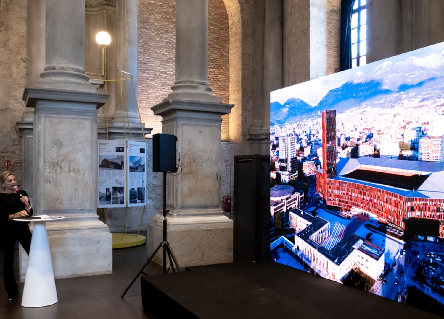 On June 26, ’23 on the occasion of the group exhibition conceived by Platform curated by Luca Molinari and Simona Finessi, and exhibited at the Scuola Grande di Misericordia in Venice from May 20 to July 30, 2023, Laura Andreini presented the design of the National Stadium of Albania in Tirana. The new stadium is a multifunctional building that can perfectly adapt to different activities. Its floor plan-inspired by the forms of the Roman Theater with three sides of grandstands stacked in two tiers-is clear, the entrances are easy to locate, and the outflows quick.