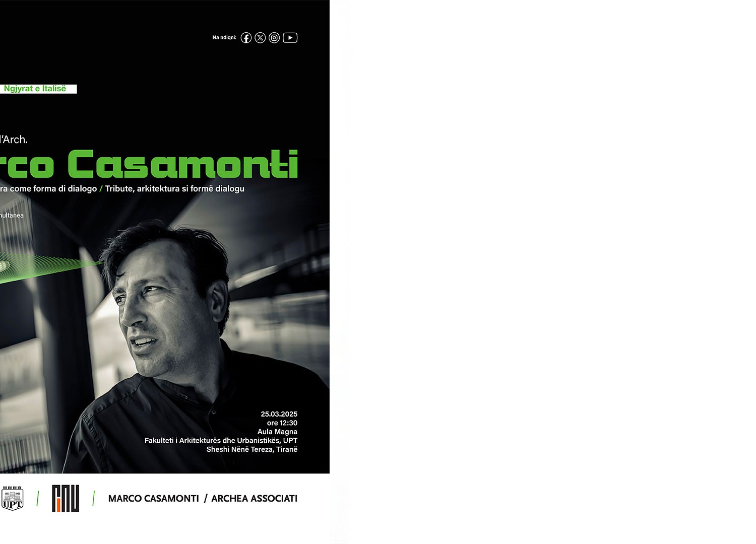 On Tuesday, March 25, 2025, architect Marco Casamonti delivered the lecture “Tribute: Architecture as a Form of Dialogue” at the Faculty of Architecture and Urban Planning at the Tirana Polytechnic University. The event, organized by the Italian Cultural Institute of Tirana in collaboration with the Albanian university, offered an important opportunity to discuss the interactions between architecture and cultural context. Casamonti shared his vision on architecture as a tool for intercultural dialogue, illustrating significant projects implemented by the firm, including the Alban Tower and Air Albania Stadium, which have helped redefine Tirana’s skyline. The conference emphasized the role of architecture in promoting international understanding and collaboration.
