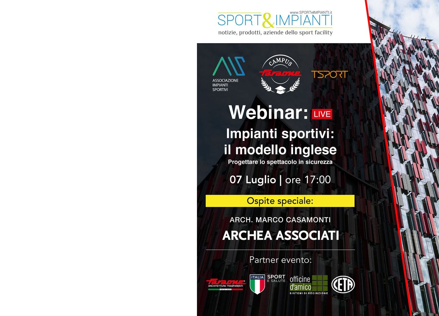 The arch. Marco Casamonti participated in the webinar organized by Faraone Campus “IMPIANTI SPORTIVI: IL MODELLO INGLESE. Progettare lo spettacolo in sicurezza” to talk about sports facilities with interesting insights on the project of the National Stadium of Albania in Tirana.