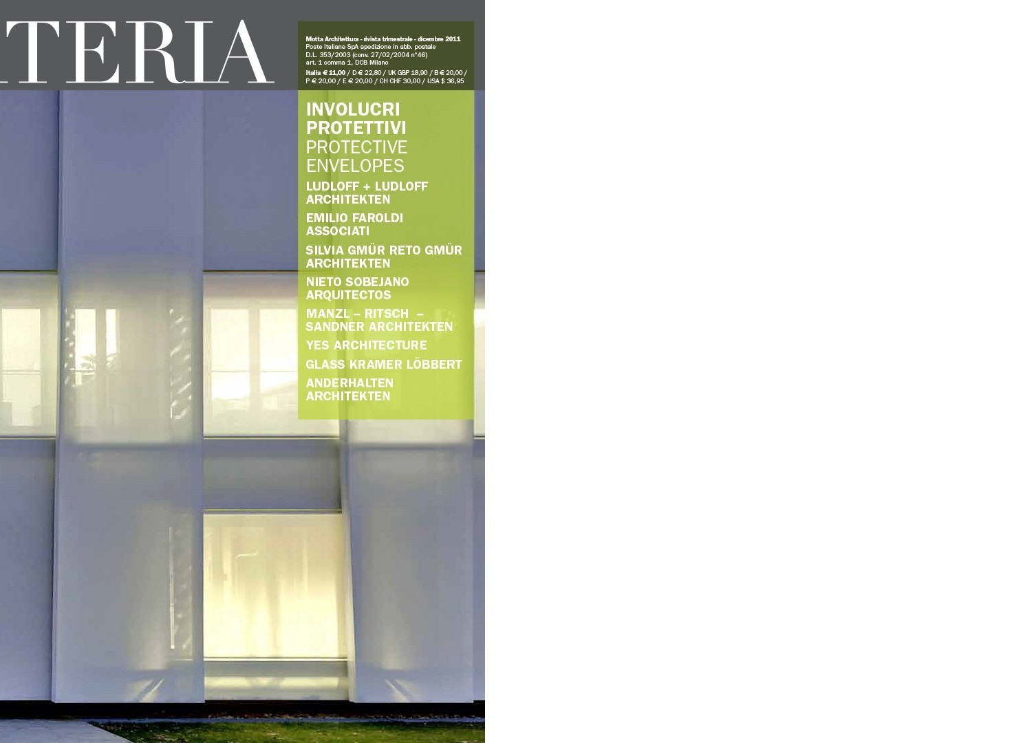 This issue of Materia features a cross-section of the role performed by the architectural shell in the contemporary construction scenario, where technological innovation provides room and possibilities for amazing experimentations and ways to conform the surface.