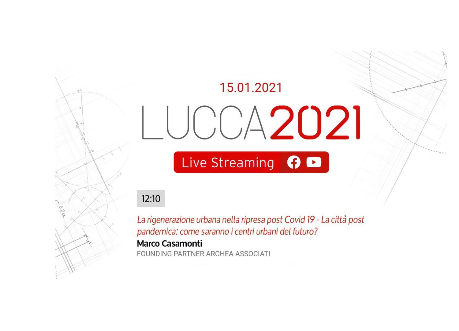 L’arch. Marco Casamonti ha partecipato alla evento, in programma il 15 gennaio 2021, “Lucca 2021, rigenerazione urbana come progetto di rinnovamento culturale”. Questo in un momento in cui l’amministrazione pubblica vuole affrontare, da protagonista, le sfide sociali, ambientali ed economiche che si presentano, con un approccio aperto alle novità e basato sul confronto e l’integrazione fra le istituzioni pubbliche e i privati, con attenzione sia ai contesti urbani, sia ai territori periferici.