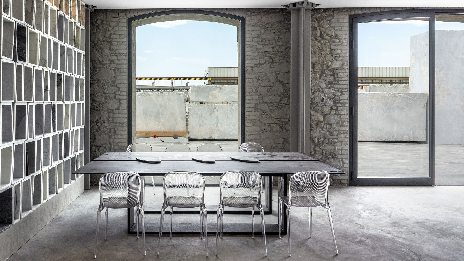 Tavolo rettangolare in acciaio verniciato, realizzato in lastre di 10 mm, composto da 2 pezzi assemblati.